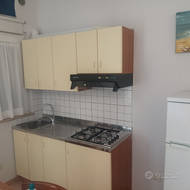 Fittasi meraviglioso appartamento sito a circa 800 MT dal lungo mare di Agropoli al primo piano , composto da ingresso salone cucina, camera matrimoniale, bagno, balcone, posto auto, aria condizionata, divano letto, l'appartamento è completamente arredato posti letto 4
