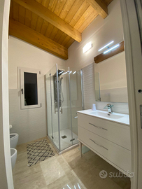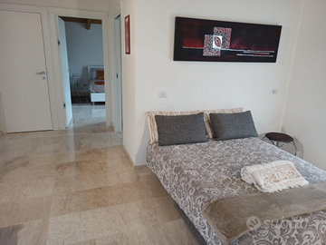 Grazioso bilocale di 40 mq al 1 piano, senza cucina, composta da ingresso zona giorno, bagno, camera matrimoniale, veranda di 20 mq. Riscaldamento o raffrescamento a pavimento. Nuova costruzione. Posti letto, un letto matrimoniale nella camera, un divano letto alla francese nella zona giorno. Non si fuma all'interno della casa. Spiacente no animali. Disponibile per singole o più giornate . Preferito contatto telefonico.