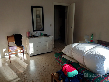 Camera ammobiliata con letto matrimoniale e armadio gigante in appartamento condiviso, un solo bagno soggiorno cucina e balcone.