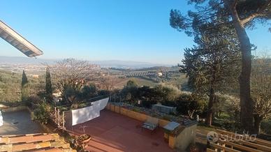 Affittasi camera matrimoniale in casa colonica immersa nel verde con vista panoramica su Firenze e la campagna circostante. La stanza è arredata con letto matrimoniale, materasso, tavolo, cassettiera, comodino e armadio, ed è dotata di bagno privato con doccia. La casa è ben arredata e attrezzata, dispone di aree comuni condivise come la cucina con forno, stufa, frigorifero e microonde, la sala da pranzo, lavanderia con lavatrice nuova, terrazza arredata con tavolo, sedie, posto auto e giardino. L'ambiente è tranquillo e confortevole, ideale per chi cerca serenità. Il canone mensile è di 550 euro, comprensive di spese condominiali (consumo di acqua, utenze comuni esterne (illuminazione, cancello, pompa) e pulizie generali due volte al mese; le utenze di luce e gas sono da dividere con l'altro inquilino. È necessario possedere un mezzo di trasporto, poiché la casa si trova in collina e i mezzi pubblici sono a 1 km a valle.