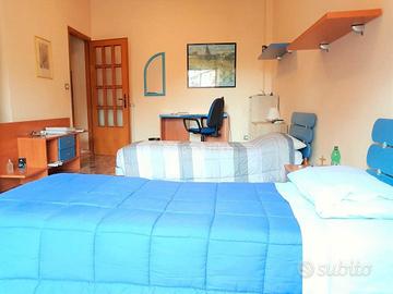 A referenziati - Confortevole ampia camera doppia uso singola singola di 24 mq, luminosa e ben arredata (letto ad uno o due piazze) in appartamento parzialmente ristrutturato - palazzo signorile con portiere - terzo piano con ascensore - vigilanza diurna e notturna delle zone comuni -zona centrale ricca di negozi e supermercati - palestra - campi calcio e tennis nelle immediate vicinanze - zona tranquilla e silenziosa - possibilità di posto auto fisso al piano seminterrato o interno viale condominiale.