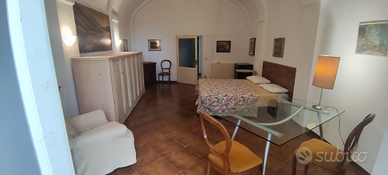 Camera matrimoniale con accesso a giardino in appartamento in centro storico. Vicino tutti i servizi incluse le università. Costi e consumi nella norma. ampia terrazza nel verde e cucinata ben fornita di elettrodomestici.
