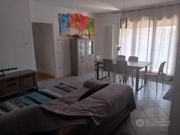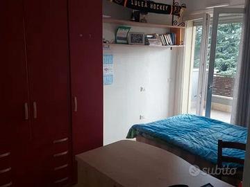 Disponibile Stanza con letto da una piazza e mezza con bagno chiuso in un appartamento in condivisione composta da 3 camere da letto, 2 bagni, cucina e soggiorno open space, terrazzo abitabile in condivisione e terrazzo personale. Garage compreso.