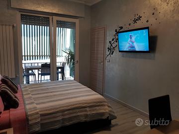 Affittasi camera matrimoniale arredata in stile moderno, luminosa con parquet, ampio balcone, un letto matrimoniale extra-large con contenitore, un armadio a specchio a 2 ante , 2 comodini, scrivania, aria condizionata, riscaldamento autonomo con termovalvole smart, TV led 40''. Sono forniti anche cuscini, lenzuola e coperte. Il materasso è nuovo, con 1600 molle indipendenti + 5cm di memory.