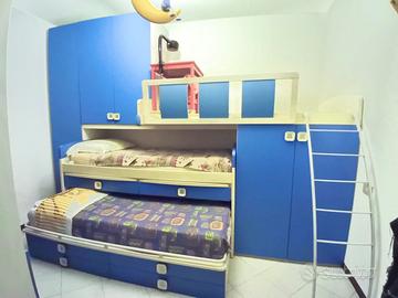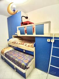 Camera in ottime condizioni, per 3 ragazzi o bambini. Spaziosi armadi e cassetti per tutti e 3. Dispone di due tavolini, che escono fuori dal letto di mezzo. Comodissima, piacevole, e crea un bell'ambiente