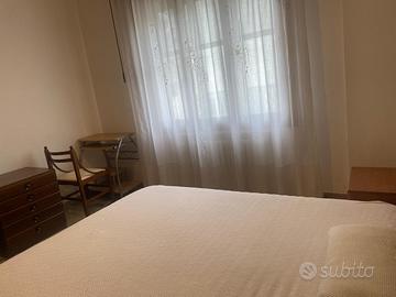 Camera matrimoniale, in un appartamento condiviso con altre due ragazze . Molto spaziosa, con grande finestra grande armadio, scrivania, mensole e letto matrimoniale. L'appartamento è composto da veranda d'ingresso, corridoio sala da pranzo con divano e TV cucinino, bagno e ampio ripostiglio con zona lavaggio e lavatrice. Utenze autonome.