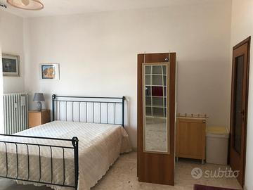 Camera matrimoniale a uso singolo con balcone camera molto grande con zona giorno con divano tavolo e sedie e frigo e frizer l'esclusivo della stanza e zona notte com letto matrimoniale e armadio vista panoramica e vicino al centro e alla stazione nel prezzo sono incluse le spese di condominio e riscaldamento e da condividere la cucina e il bagno si libera a fine febbraio
