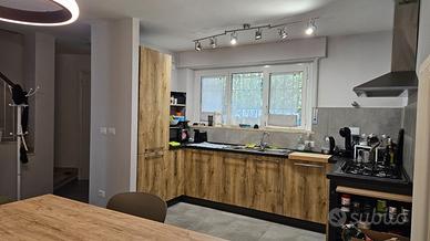 L'appartamento, di circa 120mq, arredato con gusto e recentemente ristrutturato, si articola su tre livelli e si compone di: ingresso, cucina, sala da pranzo, salotto, bagno di servizio, tre camere matrimoniali ad uso singola, bagno con lavatrice, ripostiglio ed ampio terrazzo abitabile esterno.