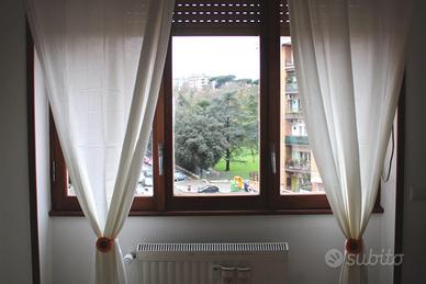 La grande stanza doppia di 30 mq proposta in locazione è di un appartamento al IV piano con ascensore di un signorile stabile in cortina con servizio di portineria. Via G. B. Gandino 50, 100 mq, Tripla esposizione, sud-ovest con affacci aperti su Villa Veschi. Davanti centro commerciale Aura. Al riparo dal rumore del traffico della vicina Via Baldo degli Ubaldi, nelle immediate vicinanze di tutti i principali servizi e a pochi metri dalla stazione "Valle Aurelia" della linea A della metropolitana e dalla linea ferroviaria FL3, a5 minuti dal policlinico Gemelli; San Pietro è raggiungibile in pochi minuti; autobus e di fronte al nuovo centro commerciale Aura. Si compone di un ampio ingresso, 3 grandi camere con letto matrimoniale di cui una possibilità di doppio letto matrimoniale, una comoda cucina abitabile, doppi servizi, balcone abitabile. Internamente, appena rimesso a nuovo, l'appartamento è stato oggetto di una ristrutturazione che ha riguardato tutti gli impianti. I bagni sono stati ristrutturati. Dalla stanza e dalla cucina si accede direttamente al balcone perfettamente abitabile. I pavimenti del soggiorno e dell'ingresso sono in marmo, quelli della zona notte in ceramica di Vietri. Viene locato arredato. No agenzie. Soltanto referenziati.