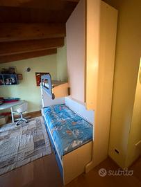 Vendo camera con letto a castello per due bambini in ottime condizioni. Inoltre ampio armadio e scrivania per lo studio.
