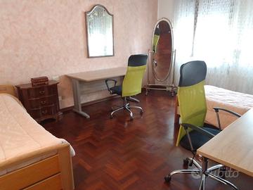 intera camera singola. Le camere sono completamente arredate e dotate di scrivanie come da foto allegate. L'ampio appartamento è composto da 4 camere, cucina abitabile, salotto, bagno con doccia, zona lavanderia con lavatrice. L'appartamento, inoltre, gode di 2 ampi terrazzi, ciascuno di 45 metri quadrati, e di posto auto all'interno della proprietà. Lo stabile si trova in zona ben servita da tutti i servizi (tra cui farmacia, supermercato, poste, scuole). Si affitta solo a studentesse e/o lavoratrici referenziate ed il canone mensile di locazione (260? il posto letto in camera doppia, 300? la camera singola) comprende acqua e tari, mentre gas e luce sono da conteggiare a parte.