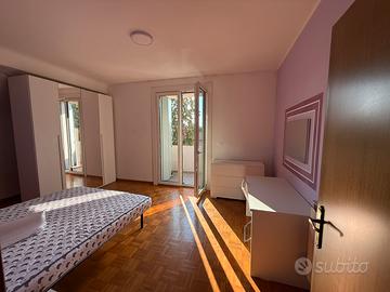 Appartamento con 6 camere matrimoniali di ampia metratura. Ogni camera è dotata di letto matrimoniale, armadio, scrivania e comò. Ogni camera ha il terrazzo.