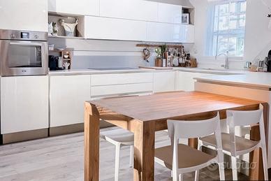 L'appartamento è composto da sala d'ingresso, cucina con fuochi, forno elettrico, forno a microonde, frigo e tavolo ,bagno con tutti i servizi, con lavatrice e box doccia .