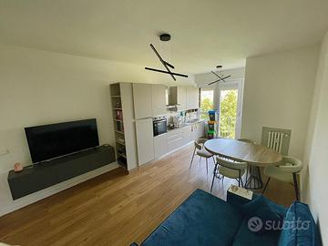 L'appartamento, da condividere con un'altra ragazza, si trova al terzo piano di un palazzo con ascensore. È composto da ingresso, cucina completamente accessoriata con lavastoviglie, divano letto e angolo TV, bagno con box doccia e antibagno con lavatrice, due camere da letto. Dispone inoltre di cantina privata, box auto e posto bici.
