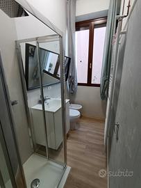 Camera singola o doppia per studenti o studentesse, complete di letto, comodino, armadio capiente e scrivania. Camere in appartamento appena ristrutturato con finiture e impianti nuovi. Appartamento al primo rialzato per tre studenti / studentesse con bagno nuovo condiviso dotato di lavatrice e asciugatrice. Cucina ampia, abitabile e accessoriata con lavastoviglie. Riscaldamento autonomo e aria condizionata. Utenze ? 90 tutto compreso. Stanza singola ad €400/mese e posto letto in camera condivisa ad € 350/mese. Vicino a supermercati (200 m), tram (200 m), autobus e tutti i servizi. Bicicletta messa a disposizione.