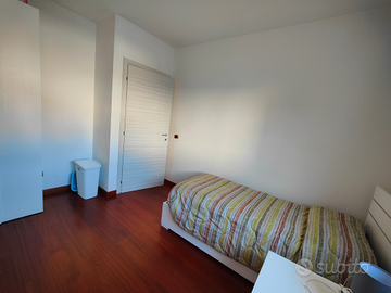 Stanza luminosa e ben arredata (letto singolo contenitore, armadio, scrivania, sedia). Bagno da condividere solamente con un'altra persona.