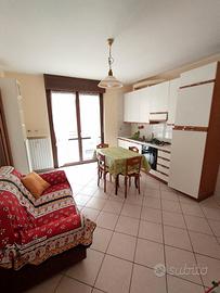 L'alloggio si trova al 2° piano in palazzina di recente costruzione in zona tranquilla ed è composto da una camera doppia, una camera singola, soggiorno con angolo cottura, disimpegno, bagno con vasca, due balconi di dimensioni generose e una cantina al piano interrato.