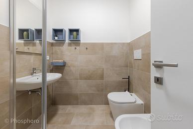 I 4 bagni, di cui uno esclusivo, sono tutti dotati di doccia. A disposizione degli inquilini, c'è anche una moderna lavasciuga, eliminando la necessità di stendere.