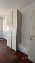 Doppio letto, doppia scrivania, doppio armadio, scarpiera e specchio lungo.