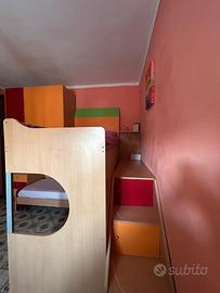 Scala laterale comoda e sicura con spazio contenitore integrato, struttura solida in legno e acciaio