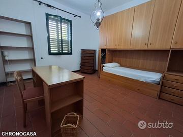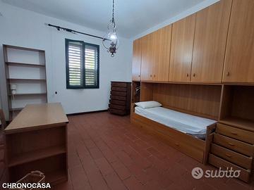 L'immobile al primo piano senza ascensore di un piccolo stabile ha una metratura di circa 120 mq ed è composta da: ingresso in corridoio, cucina abitabile, quattro camere da letto ( di cui due già locate a ragazze), saloncino, doppi servizi e ripostiglio.