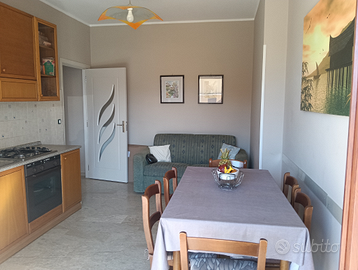 Appartamento trilocale composto da zona giorno con lato parete TV e divano, 2 camere matrimoniali e bagno.