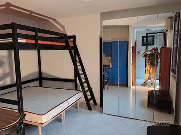 Camera e cucina in un unico locale, più antibagno, bagno, balcone, cantina e posto auto, affittasi a Codemondo. Tutto arredato nuovo.