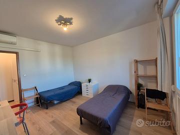 zona servita da autobus (capolinea del 21) +ulteriori mezzi - ampio giardino condominiale - attività di vario genere compreso supermercato - appartamento di 96metri quadri composto da 3 singole - disponibilità immediata - bagno con antibagno - cucina abitabile - terrazzo verandato. Split di aria condizionata in ogni ambiente - riscaldamento centralizzato. Canone € 550 ognuna + spese condominiali € 50,00. Contratto di un anno in cedolare secca. Per ulteriori info o visite lasciare proprio cellulare e orario per poter richiamare accompagnata da una breve presentazione di se stessi.