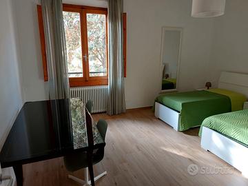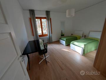 Camera verde: ampia camera doppia ad uso singolo con capiente armadio a sei ante, spazioso tavolo, due comodini, specchiera e seggiole. Canone: 540 euro + 50 euro di condominio, WI-FI e Tari. Utenze escluse.