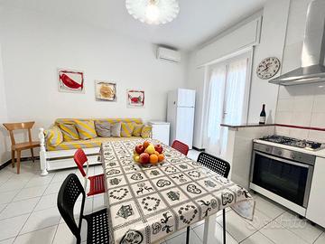 L'appartamento è composto da tre stanze singole, due bagni, cucina soggiorno ampia e luminosa e due grandi verande. L'immobile è in ottime condizioni, recentemente ristrutturato e arredato.