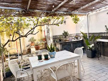 Una zona living comune con balcone interno collegato al giardino, ampia cucina di 20 mq di recente acquisto con accesso al giardino privato e terrazzo attrezzato e pergola.