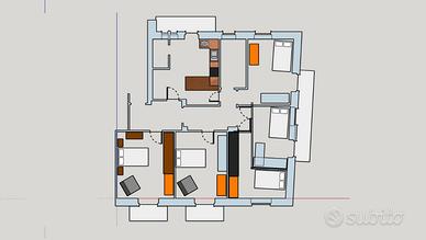 L'immobile è composto in totale da 5 stanze, cucina abitabile e due bagni. L'intero appartamento è stato ristrutturato e completamente ammobiliato nel 2019. Ogni stanza è dotata di letto a una piazza e mezzo, armadio, scrivania, sedie, luci a led. Stanze molto luminose. Ogni stanza è dotata di terrazzo.