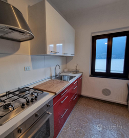 L'appartamento , molto accogliente , è composto da camera da letto , ampio soggiorno con una grande vetrata con una magnifica vista lago , grande cucina abitabile e bagno .