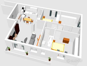 Le stanza è situata all'interno di grande appartamento da oltre 120 m2, composto da Ingresso, ampio e luminoso soggiorno con annessa cucina e angolo cottura in open space, ampio balcone con accesso dal soggiorno, corridoio zona notte, 3 camere da letto, 2 bagni con doccia di cui uno molto ampio con lavatrice e stenditoi.