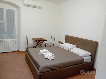 La camera per 3 persone, appena ristrutturata, dispone di letto matrimoniale e divano letto, frigo, tv, aria condizionata, bagno privato con doccia e phon. La struttura è registrata presso la Regione Liguria con codice CITR 011015-AFF-0477 e CIN IT011015C2UB4I4SX5
