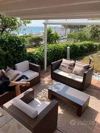 Composto da 2 camere da letto, ampio salone, veranda arredata per pasti all'aperto, barbecue in muratura, giardino con prato verde, parcheggio privato . Ristrutturata di recente situata in pieno centro e a 50 metri dalla spiaggia.