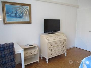 SINGOLA con grande finestra a tre vetri di 13mq calpestabili tot., arredi BIANCO AVORIO + porzione cucina abitabile, ampio bagno e disimpegno COMPLETA DI TUTTO IL NECESSARIO.
