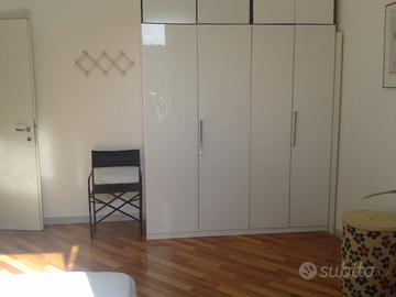 Dal 1 marzo affittasi grande camera in appartamento esclusivo, finemente ristrutturato, situato all' Ultimo Piano e distante meno di 5 minuti a piedi dall' Università La Sapienza. In questa posizione strategica, ma lontano dalla strada e circondato dal curato giardino condominiale, l'appartamento risulta estremamente silenzioso e luminoso. La casa è fornita di elettrodomestici nuovi di classe A e superiore , tra cui lavasciuga- utilissima d'inverno-, lavastoviglie, estrattore di succhi, macchina per il caffè, etc. Video ed ulteriori foto disponibili. La camera, doppia ad uso singolo, presenta parquet massello sui pavimenti e solai alti 3.5, dipinti con tinte ecologiche. Assolatissima, si affaccia sul verde. E' composta da: - Letto matrimoniale francese con materasso memory nuovo; - guardaroba 8 ante ; - grande scrivania con doppio piano, il primo in cristallo, con mensole superiori; -monitor 26''; -poltrona dattilo; - cassettiera con specchio; - libreria con ante in cristallo. L'appartamento è abitato da una studentessa italiana e da una studentessa erasmus, ciascuna in camera singola, in ambiente decisamente amichevole e tranquillo. Pertanto cerchiamo una terza studentessa a responsabile, simpatica e precisa nella cura e nella pulizia degli ambienti comuni, preferibilmente referenziata. Il prezzo dell'affitto è comprensivo di condominio, nettezza urbana e acqua. Si dividerà solo la spesa del gas e dell'elettricità, che essendo l'appartamento classe D, insieme sono inferiori alla somma di 50 euro per persona/mese. Prego le persone interessate di non chiedere se la camera è disponibile (finché l'annuncio sarà online significa che lo è) o informazioni già specificate nell'annuncio e , soprattutto, di fornire una minima presentazione di sé.