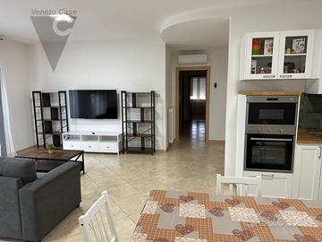 L'appartamento è composto da grande zona giorno open space, 4 camere da letto (3 già locate) 2 bagni con vasca e box doccia, terrazzo lungo sviluppato su 2 lati dell'edificio. Arredato completamente a nuovo di cucina con tavolo e sedie, divano, parete attrezzata con TV 55", librerie e scaffalature varie, lavatrice, aria condizionata zona giorno e notte, videocitofono, porte finestre anta e ribalta su tutte le stanze, portoncino blindato.