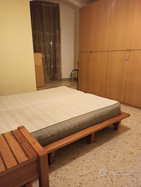 In Appartamento al primo piano camera letto matrimoniale e cameretta con bagno servito da doccia, cucina attrezzata di elettrodomestici, veranda con lavatrice, balcone, ingresso soggiorno. Ideale per una coppia di trasfertisti ed eventuale terzo posto letto singolo.