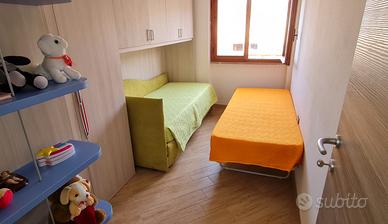 Appartamento 70 mt2 con 2 camere di cui una matrimoniale e una con 2 letti singoli, bagno, sala-cucina, ripostiglio 2 terrazze vista mare.