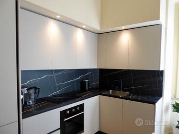 L'APPARTAMENTO è di 80 mq di recente ristrutturazione: ingresso, cucina attrezzata, 2 stanze, bagno con box doccia, ripostiglio con scarpiere, armadio e lavatrice. La cucina nuova è completa di tutto (lavastoviglie, elettrodomestici, stoviglie, piatti, bicchieri, forno, ecc).