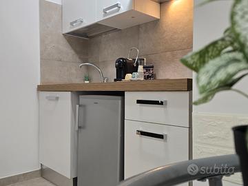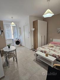AFFITTO TRANSITORIO da DICEMBRE 2025 a MAGGIO 2026, NUOVISSIMO monolocale posto al piano terra di un fabbricato terra-cielo in centro storico completamente ristrutturato. Completo di angolo cottura con induzione, frigo, TV, climatizzatore, lavasciuga, grate esterne, zanzariere letto matrimoniale con armadio e bagno completo di doccia e boiler per acqua calda. C'è tutto l'occorrente per vivere la casa , piatti, bicchieri, tazze, pentole, asse da stiro etc,,