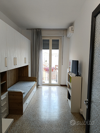 ? camera doppia con armadio a due ante scorrevoli, scrivanie con sedie, specchio, libreria, cassettiera, Smart TV 32 pollici, climatizzatore.
