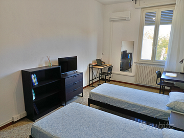 DISPONIBILI POSTI LETTO PER STUDENTESSE/LAVORATRICI. Quartiere Pablo, fuori dalla ZTL. Due camere singole e due camere doppie in appartamento luminosissimo semi ristrutturato con porta blindata al quarto piano con ascensore fino al terzo (è presente una rampa di scale). Composto da ingresso su corridoio, due bagni con finestra, uno con cabina doccia doppia e l'altro con piccola vasca da bagno/doccia, lavatrice e asciugatrice, ampia cucina con forno, lavastoviglie e doppio frigo. Termoautonomo, caldaia nuova a condensazione, termosifoni e aria condizionata in ogni camera con inverter caldo/freddo. Infissi nuovi con doppio vetro. Wi-Fi con fibra ottica. Palazzina con cortile con cancello automatico con posto bici e un posto auto (non assegnato). Posizione ideale per l'Ospedale Maggiore, l'EFSA e le facoltà di Economia, Lettere, Medicina Veterinaria. Fermata autobus sotto casa. Nei pressi supermercato CONAD, farmacia, tabacchi, edicola, ristorante, diversi bar e pizzeria. Le camere disponibili saranno: ? singola con armadio a ponte, scrivania con sedia, specchio, libreria, smart TV 32 pollici, balconcino e climatizzatore. ? singola con armadio a ponte, scrivania con sedia, specchio, libreria, Smart TV 32 pollici, climatizzatore. ? camera doppia con armadio a due ante scorrevoli, scrivanie con sedie, specchio, libreria, cassettiera, Smart TV 32 pollici, climatizzatore. ? camera doppia con armadio a quattro ante, scrivanie con sedie, specchio, libreria, cassettiera, Smart TV 32 pollici, climatizzatore. Richiesta di 450 euro al mese per la singola e 350 per posto letto in camera doppia con formula tutto incluso (spese per luce, gas, acqua, Wi-Fi, rifiuti, condominio e manutenzione caldaia). Contratto regolare con cedolare secca. Richieste 2 mensilità di cauzione. Non ci sono spese di agenzia.
