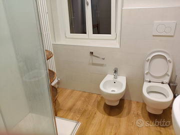 Bell'appartamento recente ristrutturazione in condominio tranquillo con giardino. Doppi servizi, lavatrici, frigoriferi entrambi con freezer. Balcone su giardino condominiale. Spese forfettarie 120 comprensive di tutto: riscaldamento, utenze, wifi, ecc. Nessuna spesa di allacciamenti ad utenze né conguagli: questo fa la differenza rispetto a molte altre proposte per cui le spese sono imprevedibili con allacciamenti a carico degli inquilini. Importo indicato per un contratto di durata annuale.