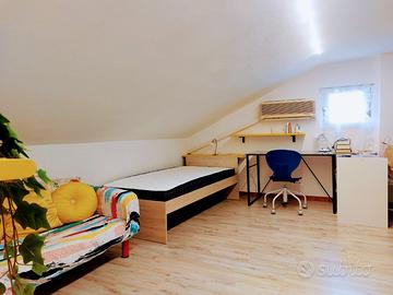 Cerco studentessa universitaria (età 18-24 anni) seria e tranquilla con cui condividere stanza doppia mansardata con bagno riservato in comodo appartamento in zona Cagliari-Pirri in tranquillissimo condominio a due passi dalle fermate del ctm M, 8, 19 e altre, e vicino a numerosi servizi tra cui vari supermercati.