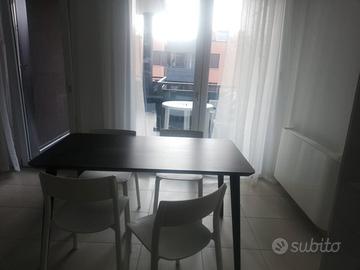 La casa è composta da: cucina abitabile con soggiorno, balcone, due camere da letto e un bagno. I servizi presenti nella residenza sono a disposizione degli inquilini e già compresi nella quota del prezzo di affitto: parcheggi per bici e moto, posto auto, una piscina all'aperto (utilizzabile da giugno fino a settembre) con zona solarium attrezzata ubicata sul tetto dell'edificio, ascensore, cantina e area con lavatrici e asciugatrici a gettone.