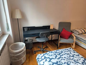 Si offre POSTO LETTO in STANZA DOPPIA arredata con gusto e dotata di letto con cassettone, comodino, scrivania con portaoggetti, armadio a 2 ante, piantana, mensola/libreria.