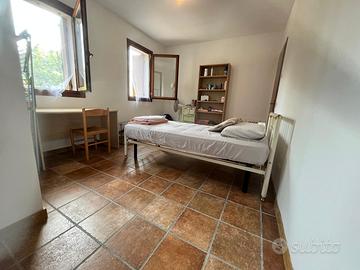 Affittasi posto letto in camera singola spaziosa e molto luminosa inserita in bel contesto. Villetta di recente ristrutturazione ammobiliata e dotata di tutti gli elettrodomestici con riscaldamento autonomo immersa in un bello spazio verde privato e relativo spazio per posto auto. L 'immobile si compone di tre stanze un grande soggiorno e un bagno finestrato